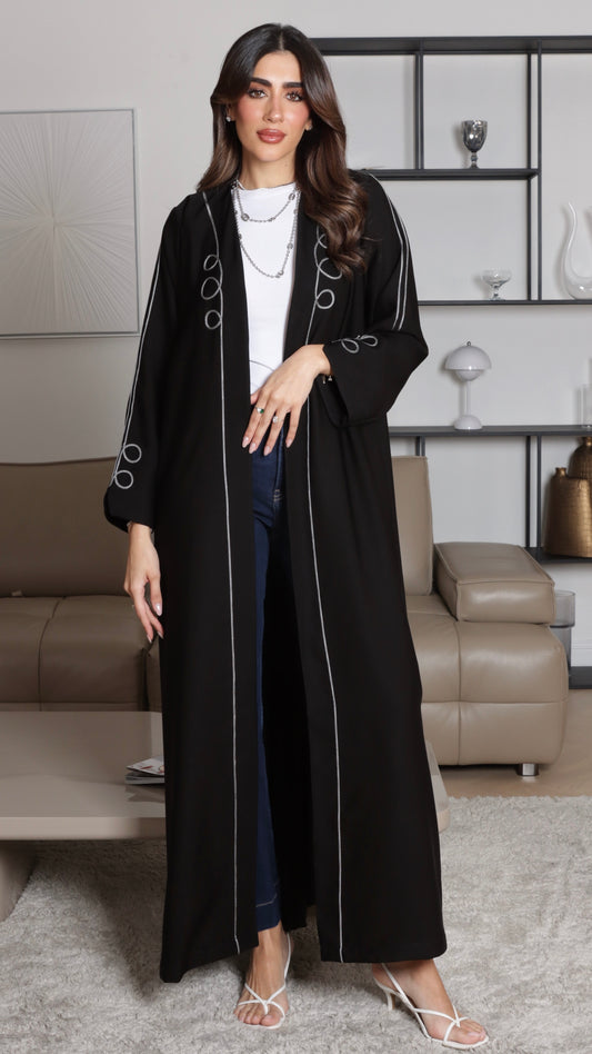 E105- Black casual abaya with piping design
