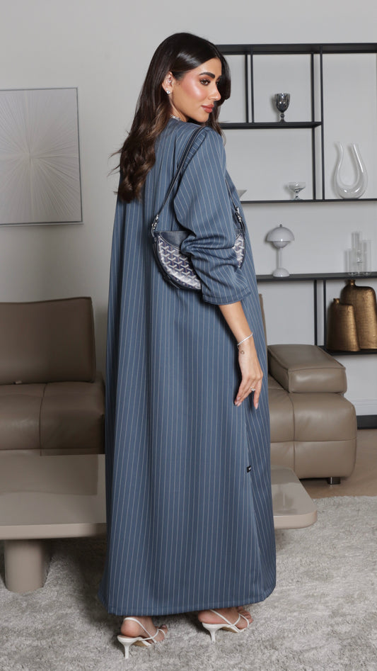 E102 Blue with green flowers print abaya ( Ready to Ship)