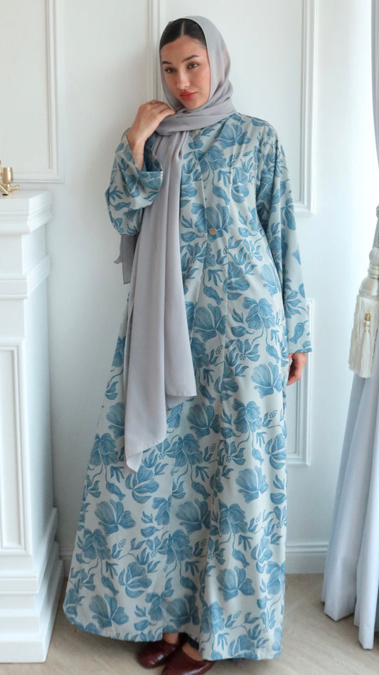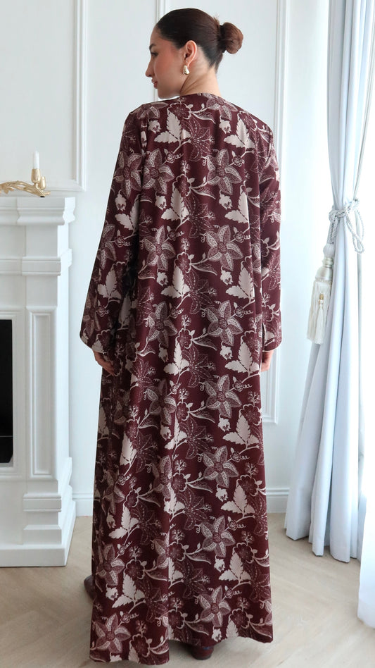 E58- Summery Brown palm tree abaya Crepe ( A - line )
